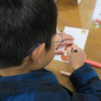 ログハウス近隣に住む、おじいちゃん、おばあちゃんに年賀状をかこう♪