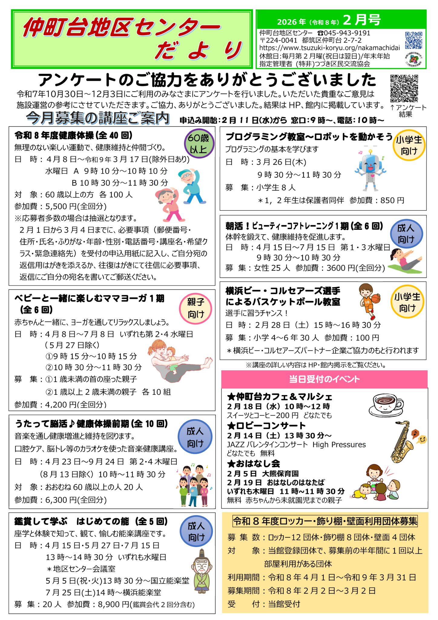■今月募集の講座ご案内 お申し込み開始は令和8年2月11日(水)です。