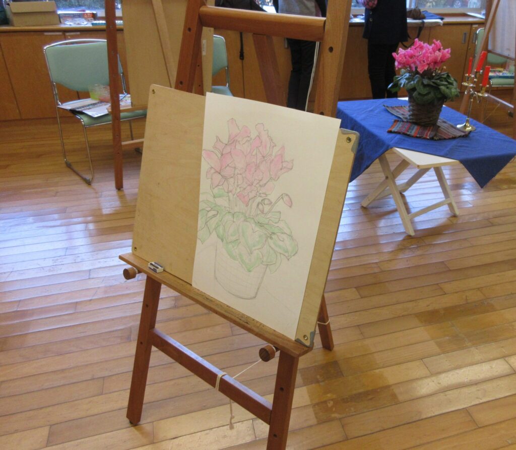「独楽の会」の講師 福井先生のご指導のもと、シクラメンを描いてみました