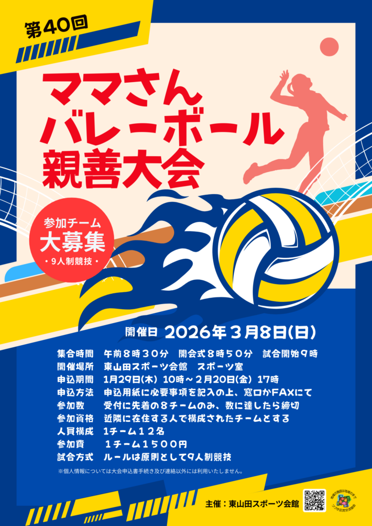 ママさんバレーボール大会(9人制競技)を開催する運びとなりました。