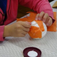 好きな和紙を選んで丁寧に貼り合わせ、世界にひとつだけの可愛いハロウィン飾りができあがりました。