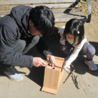 親子で協力して素敵な巣箱をつくりました。とまり木もつけて、小鳥さんみつけてくれるかな。巣箱に小鳥さんが遊びにきたらログハウスにも教えにきてね。