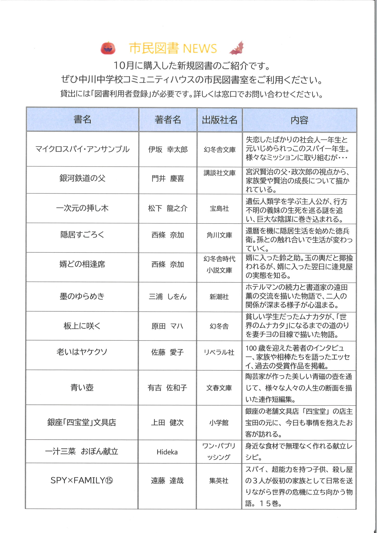 ぜひ中川中学校コミュニティハウス市民図書室に足を運んでみてください。