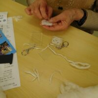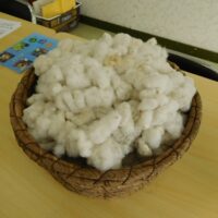 都筑区東山田で地域の居場所をづくりを運営しているチャコ村のみなさんに、畑で収穫された綿の実で、どのように糸になるのかをご説明、実演いただきました。