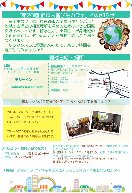 留学生カフェは、東京都市大学横浜キャンパスと地域が協力して開催する