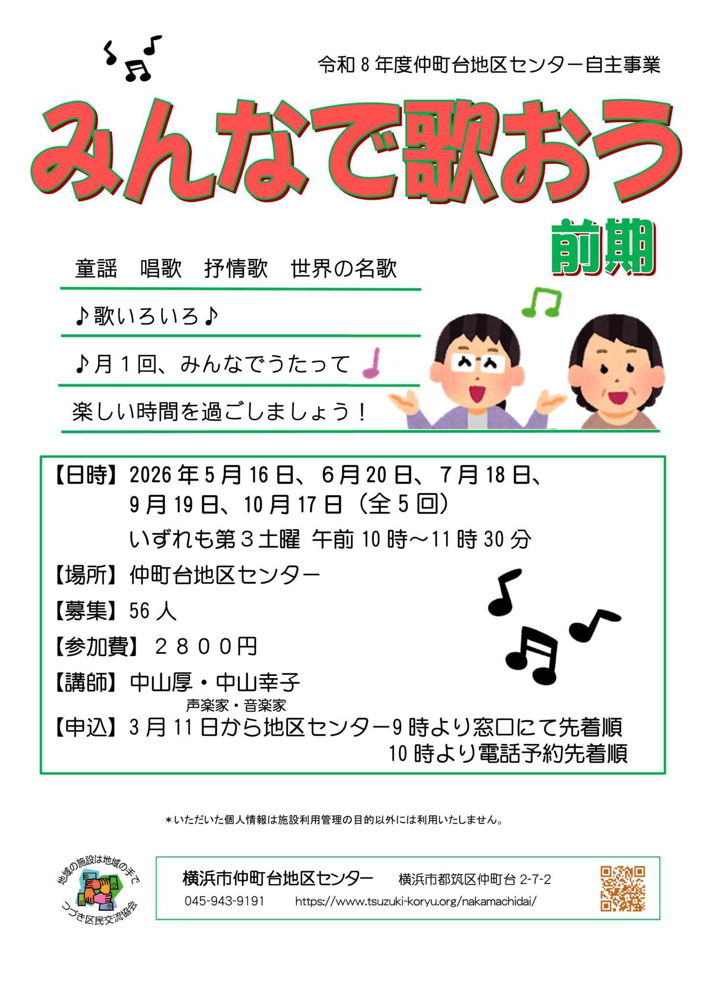 声楽家の先生と一緒に、歌詞カードを見ながら懐かしい歌を歌います。