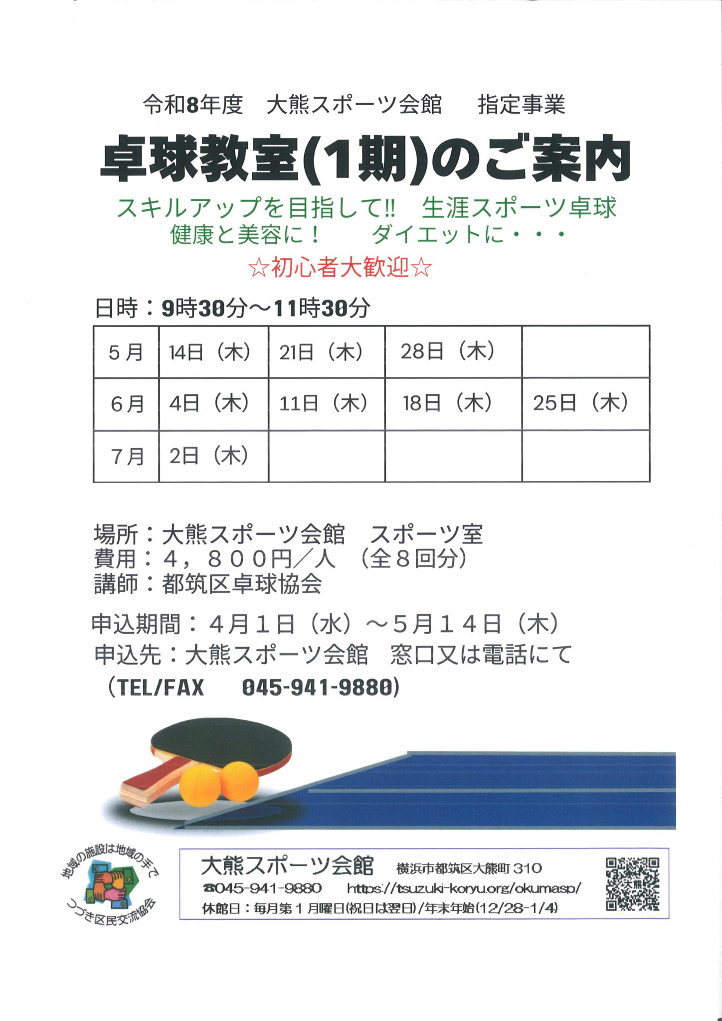 申込:4月1日(水)~5月14日(木)窓口か電話045-941-9880まで