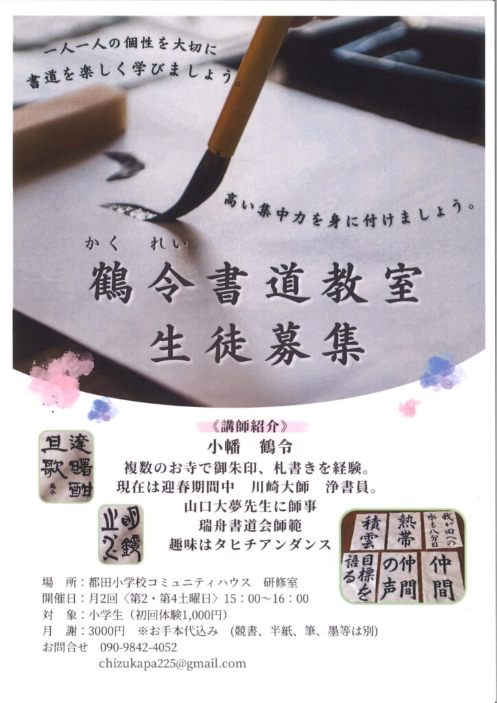 9月開講!小学生対象【鶴令書道教室】